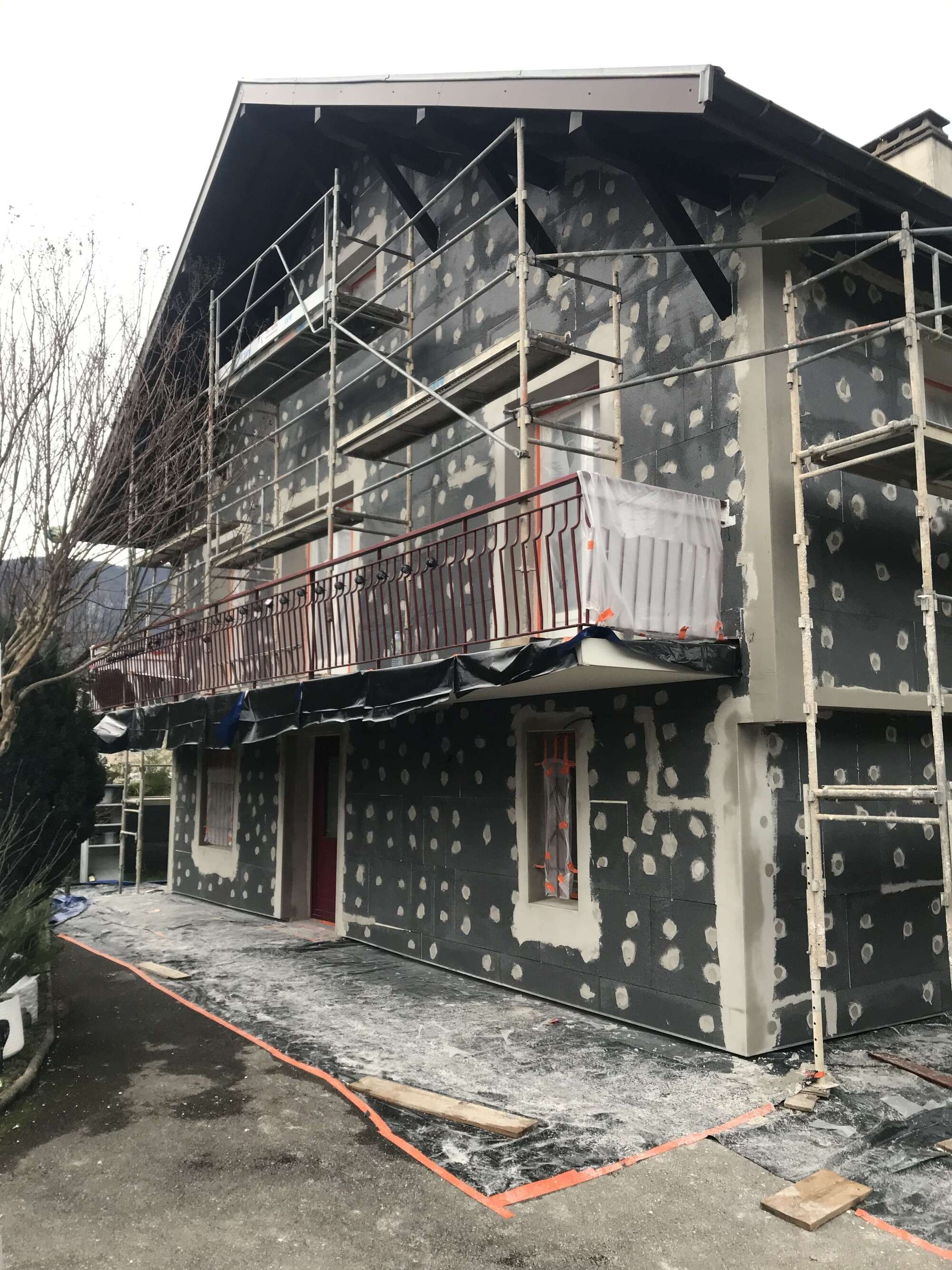 Traitement des ponts thermiques, amélioration de l’enveloppe du bâtiment et rénovation esthétique de façade.